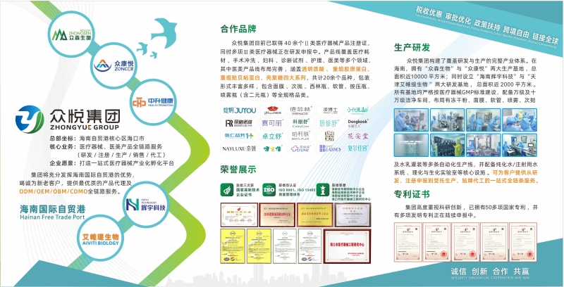 集团构建了覆盖研发与生产的完整产业体系。在海南,拥有“众森生物”与“众康悦”两大生产基地 ,总面积近10000 平方米;同时设立“海南辉宇科技”与“天津艾帷缇生物 ”两大研发基地 , 总面积近 2000 平方米 。所有基地均严格按医疗器械GMP标准建设,配备万级及十万级洁净车间,布局有冻干粉、面膜、软管、喷雾、次抛及水乳灌装等多条自动化生产线,并配备纯化水/注射用水系统 、理化与生化实验室等核心设施 。可为客户提供从研发、注册申报到受托生产、贴牌代工的一站式全链条服务。